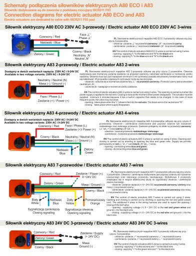 Napędy elektryczne A80 ECO oraz A83 zostały stworzone do obsługi zaworów kulowych. Przeznaczone są do montażu bezpośrednio na zaworach kulowych dwu i trzydrogowych o średnicach od 1/2 do 1 1/4 cala (DN15, DN20, DN25, DN32) posiadających płytę montażową zgodną z ISO5211. Siłowniki elektryczne A83 mogą współpracować z zaworami w wersji mosiężnej jak i nierdzewnej o kącie obrotu do 90 stopni.