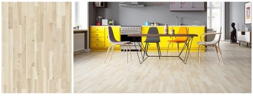 Mleczna podłoga o subtelnym wyglądzie. Niezwykła wytrzymałość jesionu, została ukryta pod łagodnie zarysowanym usłojeniem i niewielkimi różnicami odcieni.