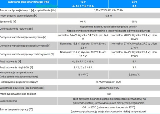 Charakterystyka ładowarki Blue Smart Charger IP65: