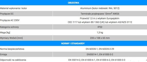 - Ładowarki te są absolutnie ciche: brak wentylatora lub innych ruchomych elementów.