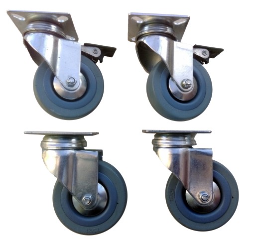 ZESTAW KÓŁ 1 SZT. FI 75 MM Z HAMULCEM, 1 SZT. BEZ HAMULCA ORAZ 2 SZT. STAŁE NA PŁYTKĘ.