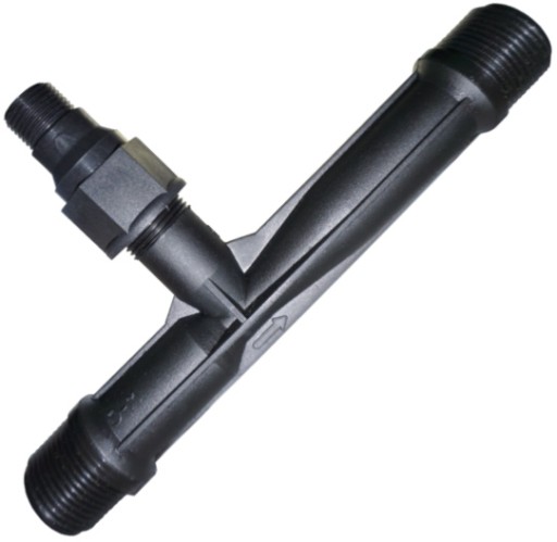 Kompletna zwężka Venturiego wraz ze zintegrowanym zaworem zwrotnym. Zwężka jest podstawowym elementem do budowy napowietrzacza wody. Napowietrzacz powinien być zainstalowany przed hydroforem bezprzeponowym w każdej instalacji z odżelaziaczem na złożu katalitycznym typu Birm, Defeman, Klarsanit itp.