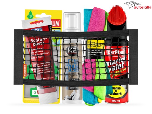 To wytrzymała siatka obszyta po bokach taśmą typu rzep. Na górze i dole wykończona elastyczną gumą, która umożliwia dopasowanie siatki do przewożonych przedmiotów. Płotek mocuje się do wykładziny w bagażniku lub kabinie auta.