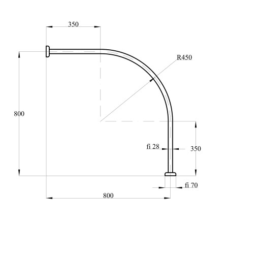 Promień drążka: R450 mm.