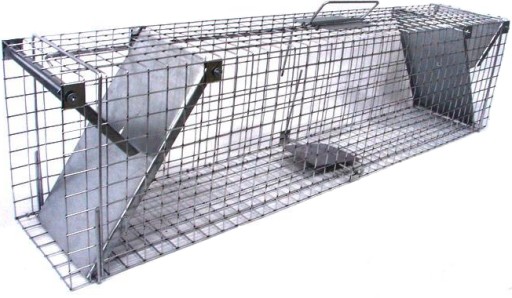 - Stalowa, nierdzewna pułapka na kuny, łasice, koty i inne zwierzęta o wymiarach 82x17x20cm