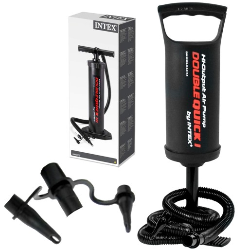 Koniec z godzinami poświęconymi na mozolne pompowanie i wypompowywanie materacy metodą usta – ustnik. Dzięki pompce nożnej marki Intex z 3 wymiennymi końcówkami w ekspresowym tempie napompujesz dmuchany materac, ponton czy jakiekolwiek inny produkt dmuchany. Jej kolejnym atutem jest możliwość pompowania powietrza w obie strony - zarówno przy ruchach w górę jak i w dół. Dzięki temu udogodnieniu czas pompowania i oczekiwania na gotowość dmuchanych przedmiotów do użytku znacznie się skraca. Ale to nie koniec licznych walorów tej pompki. Posiada ona bowiem także długi, elastyczny przewód ułatwiający dotarcie do trudno dostępnych zakamarków.