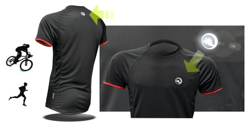 Odblaski umieszczone z przodu i z tyłu poprawiają bezpieczeństwo podczas uprawiania joggingu czy jazdy na rowerze – po zmroku czy w nocy.