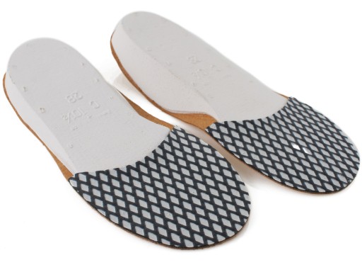 Wykonane z wysokiej jakości skóry owczej PECARI - garbowanej roślinnie. Skóra została podklejona sztywną wstawką ortopedyczną, tworząc wkładkę dopasowaną do stopy dziecka.