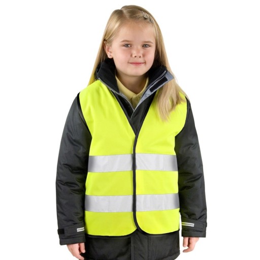 ŻÓŁTA KAMIZELKA ODBLASKOWA DLA DZIECI - do poprawy widoczności podczas jazdy w dzień i nocy. Bądź widoczny i bezpieczny - w drodze do szkoły, na rowerze, hulajnodze, rolkach i spacerze!