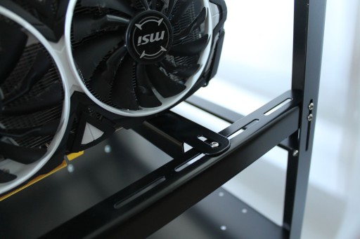 Tylna belka podtrzymująca kartę graficzną w pełni regulowana poziomo oraz pionowo.