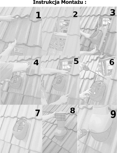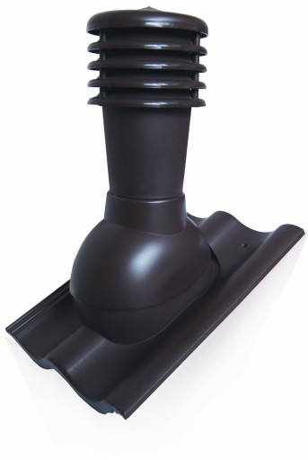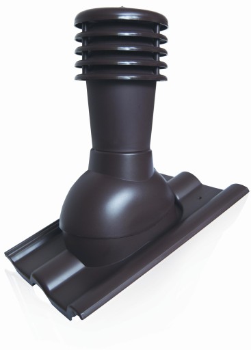 Kompletny kominek przeznaczony do wentylacji instalacji kanalizacyjnych, z profilowanym przejściem dachowym, montowany w miejsce istniejącej dachówki.