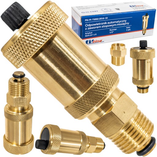 ODPOWIETRZNIK AUTOMATYCZNY Z ZAWOREM ODCINAJĄCYM 1/2"PIONOWY MOSIĄDZ FITING