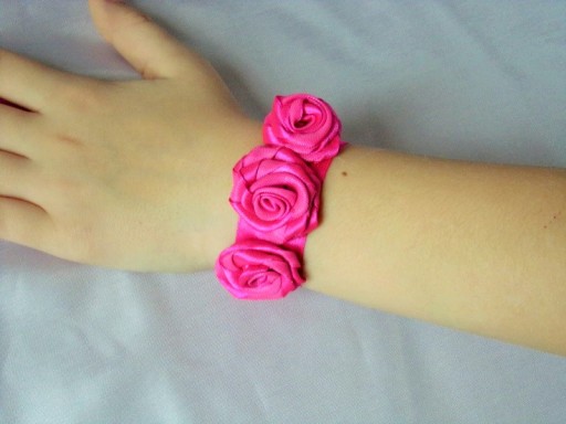 Ozdoby wykonane są z satynowych różyczek i wstążki.