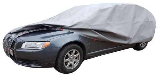 Pokrowiec na samochód polskiej produkcji, wykonany z wytrzymałych i odpornych na warunki atmosferyczne materiałów. Pokrowiec na całej części środkowej posiada materiał 4-warstwowy , z wbudowaną w materiał folią, która zapewnia wodoodporność pokrowca, chroni przed opadami deszczu i śniegu oraz przed szronem. Boczne części pokrowca wykonane zostały z materiału wielowarstwowego oddychającego, który zapewnia prawidłową cyrkulację powietrza pod pokrowcem i osuszanie kropel wilgoci parującej od podłoża i skraplającej się pod pokrowcem. Oddychalność pokrowca zabezpiecza przed powstaniem korozji. Materiał pokrowca posiada dodatkowy filtr UV, który zapewnia jego wytrzymałość na promieniowanie słoneczne. Pokrowiec nie ulegnie zniszczeniu po kilku miesiącach, lecz posłuży kilka lat, ciesząc najlepszą ochroną auta.
