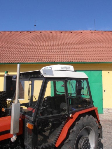 W skład klimatyzatora wchodzi moduł chłodzący instalowany na dachu kabiny. Wytwarza on i zapewnia stały przepływ wilgotnego powietrza wewnątrz kabiny dzięki pracy elektrycznej dmuchawy, poprzez słomkowy/włóknisty filtr nawilżony wodą. Urządzenie może być sterowane z panelu kontrolnego na urządzeniu lub z pilota zdalnego sterowania (opcja).Klimatyzator wykorzystuje proces chłodzenia powietrza w trakcie odparowania wody. W rezultacie, chłodniejszy prąd powietrza przepływa przez klimatyzator do wnętrza kabiny. Nasz produkt od lat cieszy się bardzo dużą popularnością w takich krajach jak: Hiszpania, Portugalia, Francja, Niemcy, Italia, Benelux czy Dania.Zalety klimatyzatora:* może pracować przy włączonym jak i wyłączonym silniku !!!* klimatyzator poprawia efektywność pracy kierowców,* ma bardzo niskie koszty eksploatacji* Klimatyzator ma niski pobór mocy i jest zasilany wyłącznie z akumulatora.