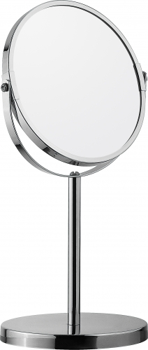 Klasyczne lusterko kosmetyczne wykonane ze stali pokrytej chromem, która nadaje mu połysku i eleganckiego wyglądu. Szkło umieszczone jest na wysokiej nóżce dlatego postawione na toaletce lusterko znajduje się na wysokości twarzy ułatwiając wykonanie makijażu i innych czynności. Funkcjonalności dodaje mu ruchoma ramka - wystarczy obrócić lusterko i uzyskujemy dwukrotne powiększenie widzianego obrazu.
