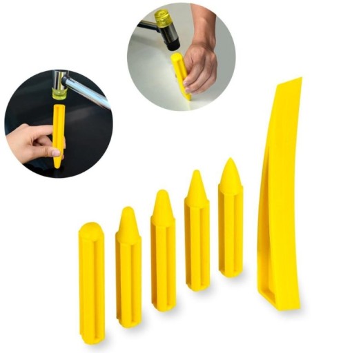 Załączone do zestawu pobijaki pomogą nam w likwidacji wybrzuszeń, górek powstałych w wyniku "przepchnięcia" naprawianych elementów.