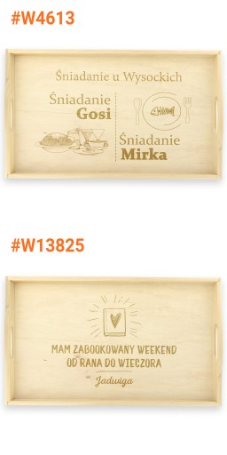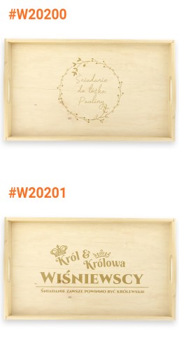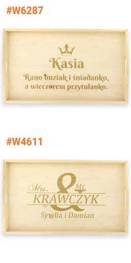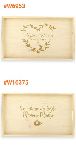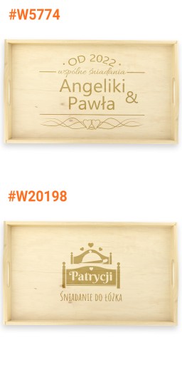 Wyjątkowym prezentem z okazji ślubu, urodzin lub rocznicy będzie stolik śniadaniowy z indywidualnym grawerem. Wykonany został z drewna olchowego, kolor naturalny - nieimpregnowany. Grawer zamieścimy na środkowej części tacy, który zostanie wykonany laserowo co gwarantuje precyzyjny i trwały grawerunek. Taki praktyczny upominek na pewno wzbudzi uśmiech na twarzy obdarowanej osoby.
