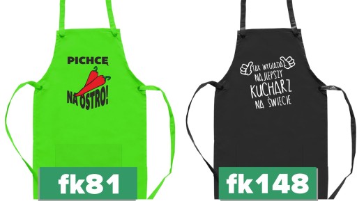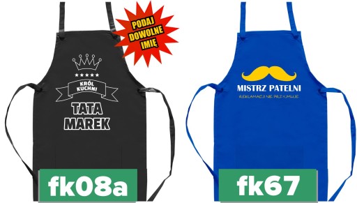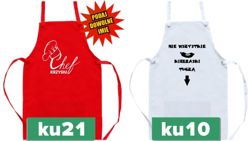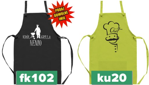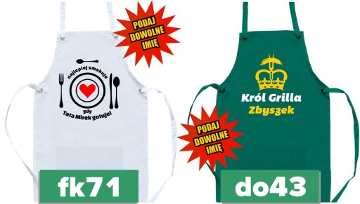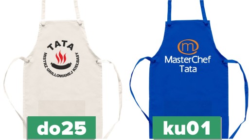 - W miejscu “Wiadomość dla Sprzedającego” podaj wybrane nazwy wzorów nadruków oraz kolor fartuszka (np. ku21 PAWEŁ czarny, do55 ZBYSZEK czerwony)