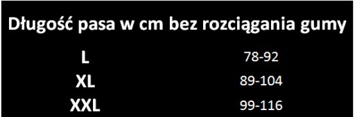 Aby dobrać odpowiedni rozmiar pasa posłuż się tabelą poniżej