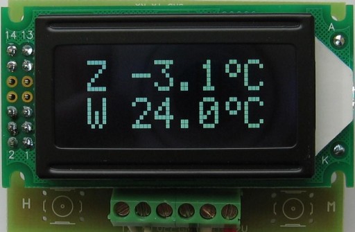 Do pomiaru wykorzystano cyfrowe czujniki temperatury (są w zestawie) firmy Dallas działające za pośrednictwem magistrali 1-Wire - DS18B20