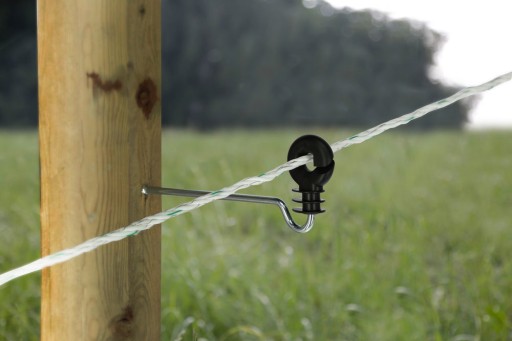 Izolator okrągły z trzpieniem o długości 18,5 cm. Trzpień metalowy z wkrętem do drewna, może być również montowany w słupkach betonowych za pomcą kołków rozporowych. Izolator posiada wzmocnione kołnierzyki zapobiegające przebiciom oraz zaokrąglone brzegi zabezpieczające przewód przed przetarciem. Ich głowna zaleta to możliwość odsunięcia lini ogrodzenia od istniejącego już płotu.