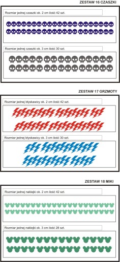 Każdy zestaw zawiera 2 arkusze z naklejkami, z czego każdy arkusz może być w innym kolorze.