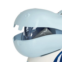 Szybki i efektywny inhalator tłokowy w kształcie hipopotama. Profesjonalny wyrób medyczny ukryty w zabawnej obudowie. Wyposażony w zestaw akcesoriów dla dziecka i osoby dorosłej.