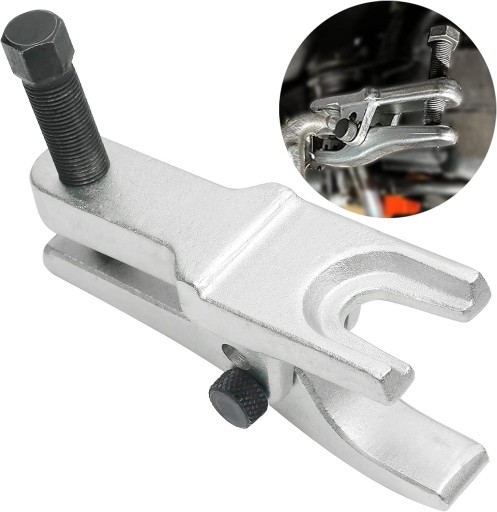 Prezentowany przez nas ściągacz idealnie nadaje się do ściągania przegubów kulistych, sworzni czy też drążków. Dużym atutem jest dwustopniowa regulacja wysokości ściągania mająca zastosowanie do większych aut osobowych i dostawczych. Wykonany z utwardzanej stali dzięki czemu nie musimy używać narzędzi do pobijania lub też udarowych. Ściągacz pracuje na zasadzie prasy śrubowej o drobnym gwincie. Nie uszkadza drążków i stabilizatorów.