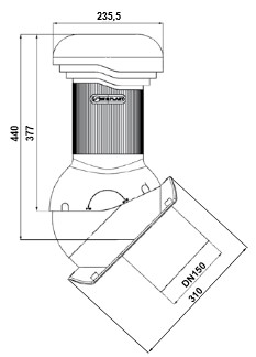 Kominek regulowany nieocieplony (0-50 st.) do blachodachówek średnica kanału wentylacyjnego 150 mm, wysoki 44 cm.