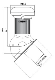 Kompletny kominek do wentylacji grawitacyjnej na istniejące pokrycie płaskie : gont, papę, blachę płaską, z odpływem kondensatu (skroplin) na zewnątrz przez głowicę. Regulowany kąt nachylenia od 0-50 stopni.Wysoki 44 cm. Średnica kanału wentylacyjnego 150 mm. Kominek posiada oczko poziomujące do ustawiania kominka w pionie.