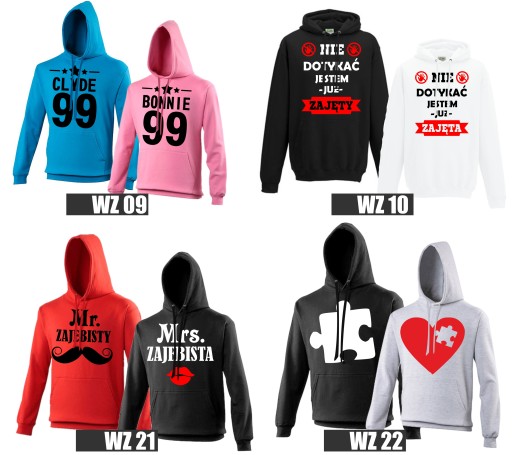 Bluzy z kapturem z nadrukiem dla zakochanych jako prezent, przyprawią Twoją ukochaną/ukochanego o szybsze bicie serca. Idealne na wspólne spacery lub sesje zdjęciową - zawsze tam, gdzie jesteście we dwoje ❤