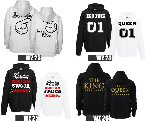- GRATIS możliwość dodania DODATKOWEGO NADRUKU* na bluzy (Waszych imion, np. Kasia i Tomek lub małych koron)