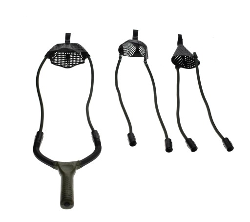 Zestaw zawiera procę z dwoma dodatkowymi gumami i koszami