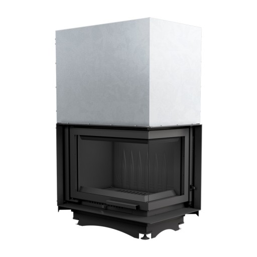 Wkład kominkowy z dwoma szybami zestawionymi ze sobą pod kątem prostym (szyby łączone bez szprosa).