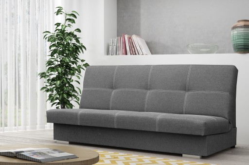 Axel wyposażony jest w pojemnik na pościel oraz funkcję spania rozkładaną za pomocą automatu, duże satynowe nogi przednie oraz bardzo efektowne przyszycia w kolorze białym