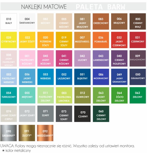 - każdy arkusz z naklejkami może być zamówiony w innym kolorze