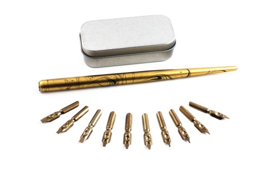 НАБОР ПЕРЬЕВ ДЛЯ КАЛЛИГРАФИИ 10 ШТ. + ДЕРЖАТЕЛЬ + ПУД