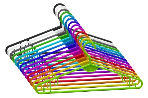 Wieszaki odzieżowe plastikowe kolorowe UNIWERSALNE - 50 sztuk