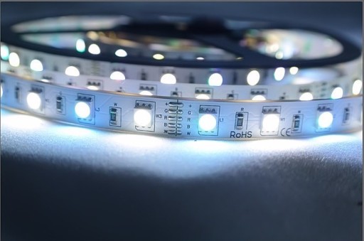 Taśma LED RGBW jest to nowoczesny, rewolucyjny oraz uniwersalny produkt, który charakteryzuje się tym, że na taśmie LED znajdują się diody typu RGB+W, które umieszone są na przemian. Dzięki połączeniu barwy R (czerwony) G (zielony) B (niebieski) oraz W – diody światła białego mamy możliwość uzyskania dowolnego koloru z palety RGB oraz światła białego naturalnego 5050 sterowane oddzielnie. Dzięki temu można uzyskać idealna barwę białą oraz ciekawe efekty wizualne.