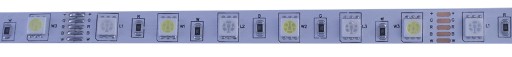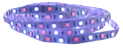 - LED kolorowy może świecić każdą barwą - czerwonym, niebieskim, zielonym. Dodatkowo na taśmie zamontowane są chipy białe naturalne 5050 sterowane oddzielnie. Dzięki temu można uzyskać idealna barwę białą oraz ciekawe efekty wizualne,