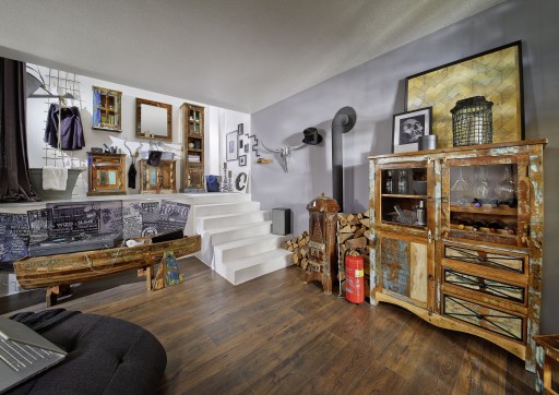 Ławka jest nowa. Wykonana z Indyjskiego drewna, pochodzącego z odpadów, jak również ze starych mostów i statków, które są częścią nowego stylu. To powoduje, że naturalne zasoby ziemi są chronione. Każdy mebel jest unikalny, ze względu na ręczną produkcję oraz strukturę drewna. Kolorystyka oraz struktura drzewa (małe pęknięcia, dziury, nierówności, które są wykonywane celowo), podkreśla indywidualność mebla.