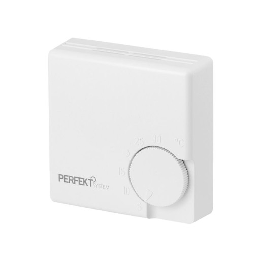 Regulator temperatury pokojowej z pokrętłem do regulacji nastawy. Regulator temperatury pokojowej jest umieszczany w pokoju (montaż przewodowy ścienny), dla przewodowej transmisji do odbiornika mierzonych wartości. Pozwala użytkownikowi ręcznie modyfikować temperaturę w pomieszczeniu.