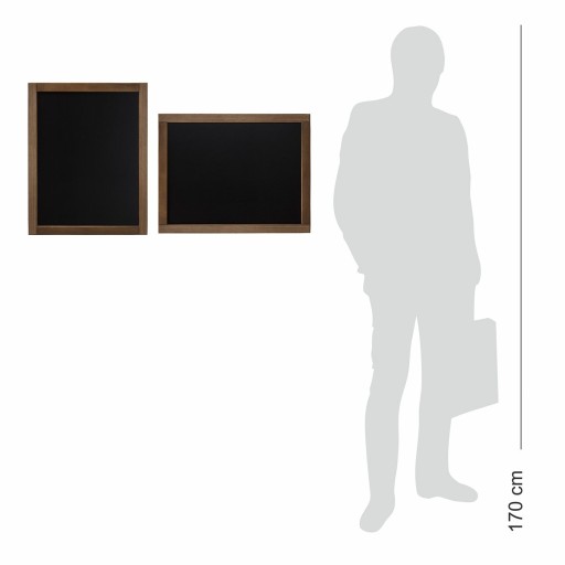 Mała klasyczna tablica kredowa w drewnianej ramie. Można po niej pisać kredą lub markerem kredowym. Dzięki swoim niewielkim rozmiarom doskonale nadaje się do zawieszenia na ograniczonych miejscem powierzchniach i tworzenia dowolnych kompozycji. Można ją wieszać zarówno w poziomie jak i pionie. Doskonale prezentuje się na sztaludze.