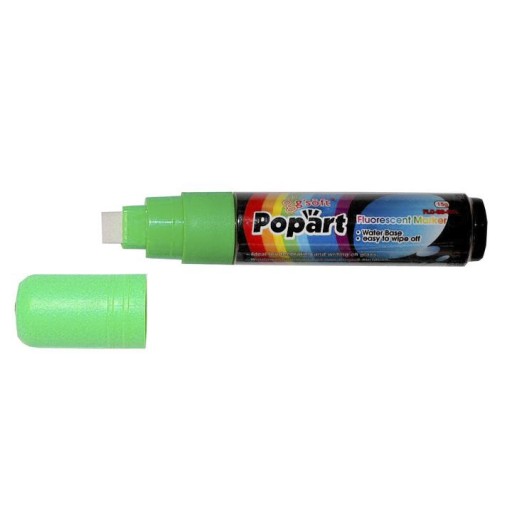 Grubopiszące markery kredowe POPART 15g przeznaczone są do potykaczy, tablic i tabliczek, szkła, plastiku oraz innych gładkich powierzchni. Zawierają 15g płynnej kredy. Dostępne są w 7 fluorescencyjnych kolorach do wyboru. Żywe, fluorescencyjne kolory umożliwiają tworzenie wielobarwnych, doskonale zwracających uwagę kompozycji. Dzięki markerom POPART 15g Twoja reklama będzie widoczna. Ścięta skośnie końcówka pisaka POPART daje możliwość zmiennego, fantazyjnego prowadzenia linii pisania od 1 mm do 10 mm szerokości. Miękka końcówka markerów nie niszczy powierzchni do pisania, dlatego Twój potykacz, tablica czy tabliczka kredowa będą Ci służyć znacznie dłużej niż przy użyciu zwykłej kredy.