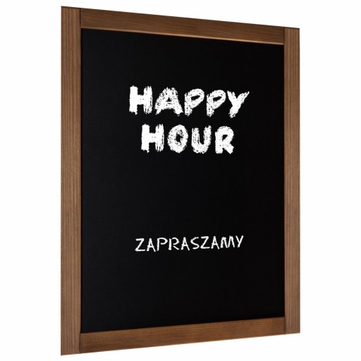 Rama tablicy kredowej ma szerokość 3,5 cm. Wykonana jest z pobejcowanego drewna. Bejca wnika w strukturę drewna i trwale barwi je na kolor brązowy, zachowując przy tym widoczny, naturalny układ słojów. Elegancki, klasyczny wygląd tablicy świadczy pozytywnie o jakości usług i produktów w Twojej firmie.