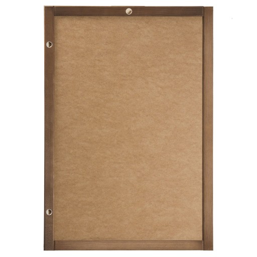 Rama tablicy kredowej ma szerokość 3,5 cm. Wykonana jest z pobejcowanego drewna. Bejca wnika w strukturę drewna i trwale barwi je na kolor brązowy, zachowując przy tym widoczny, naturalny układ słojów. Elegancki, klasyczny wygląd tablicy świadczy pozytywnie o jakości usług i produktów w Twojej firmie.