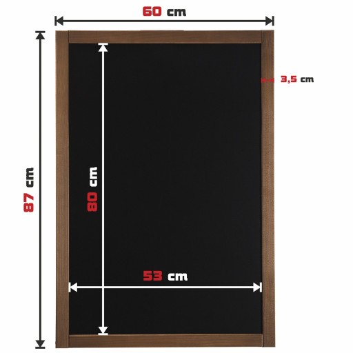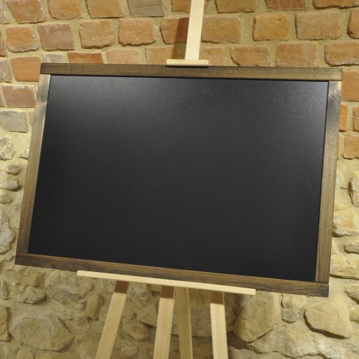 Bardzo duża tablica kredowa w drewnianej ramie. Można po niej pisać kredą lub markerem kredowym. Ze względu na swoje bardzo duże rozmiary (60 x 87 cm!) może być zamieszczona w dużej odległości od odbiorcy. Można ją wieszać zarówno w poziomie jak i pionie. Doskonale prezentuje się na sztaludze.