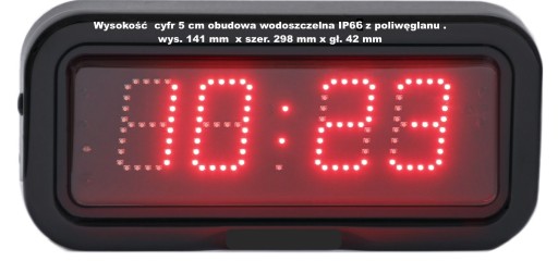 Przemysłowy, profesjonalny nie duży zegar led z funkcją stopera, wyświetlania daty z przekaźnikiem dźwiękowym do 30 alarmów w cenie.