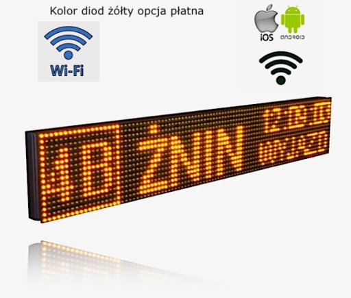 - Profesjonalny, wyświetlacz zewnętrzny i wewnętrzny led, przeznaczony do montażu w środkach transportu jako tablice informacyjne. Można też wykorzystać w witrynach sklepów, poczekalniach w przychodniach.